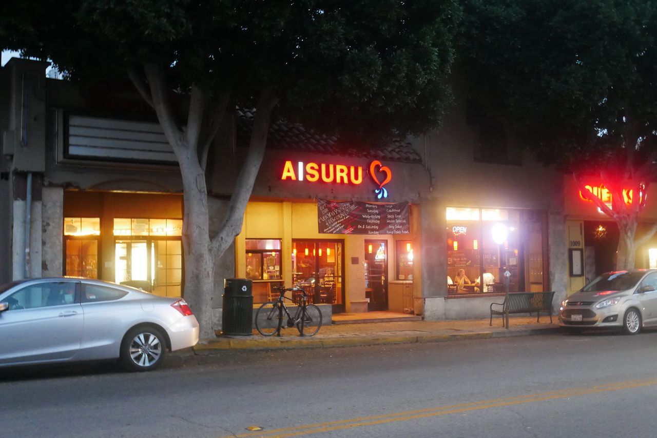 夜ご飯の店を探していたら、AISURUという日本料理屋を発見。店名が「愛する」って。しかもよく見るとハートマークもある。たまらず今日はこのお店に決めました。
