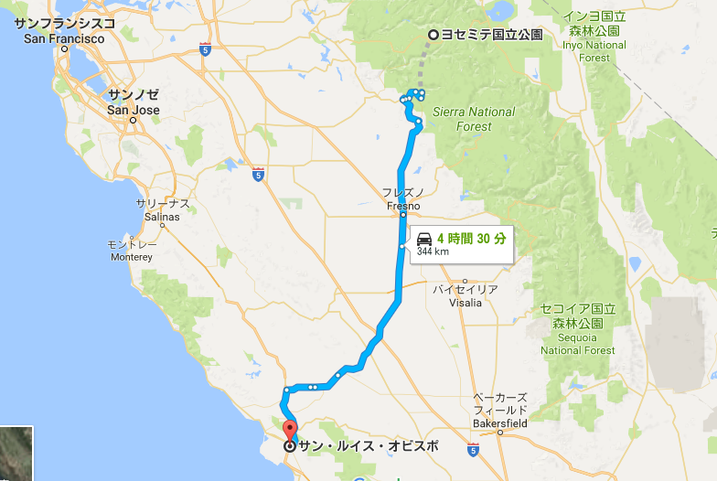 ヨセミテからサンルイスオビスポ向かいます。