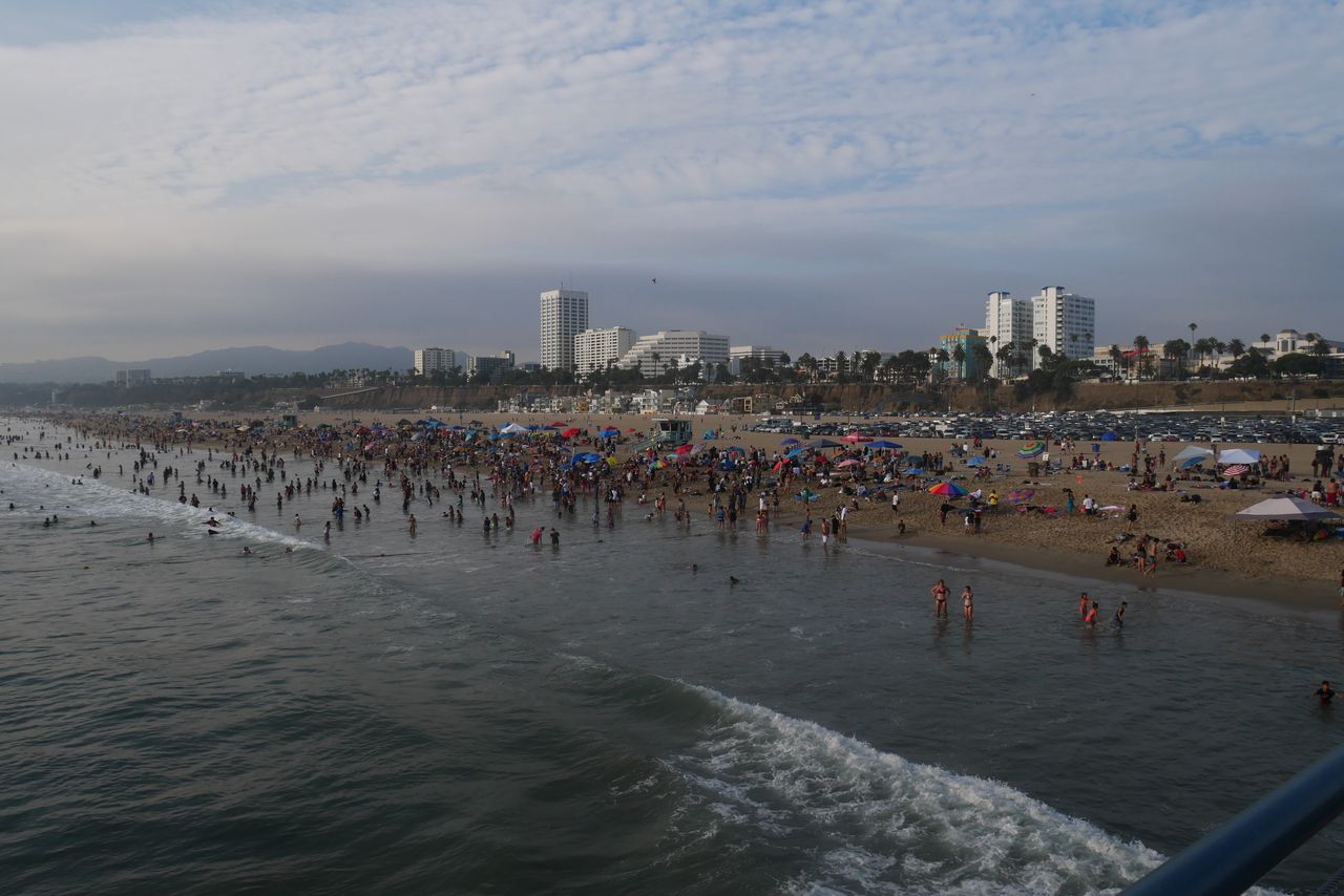 夕方5時くらいなのに人だらけ。アメリカ人はビーチが好きなのか。