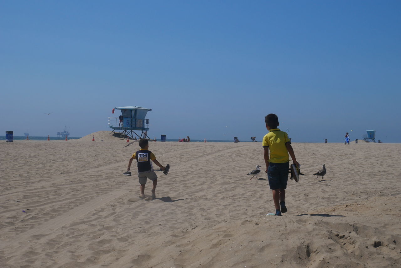 子どもたちも一緒にハンティントンビーチへ。このビーチはロングビーチから30分くらい。映画に出てきそうビーチです。人は少なく、日本人はいません。