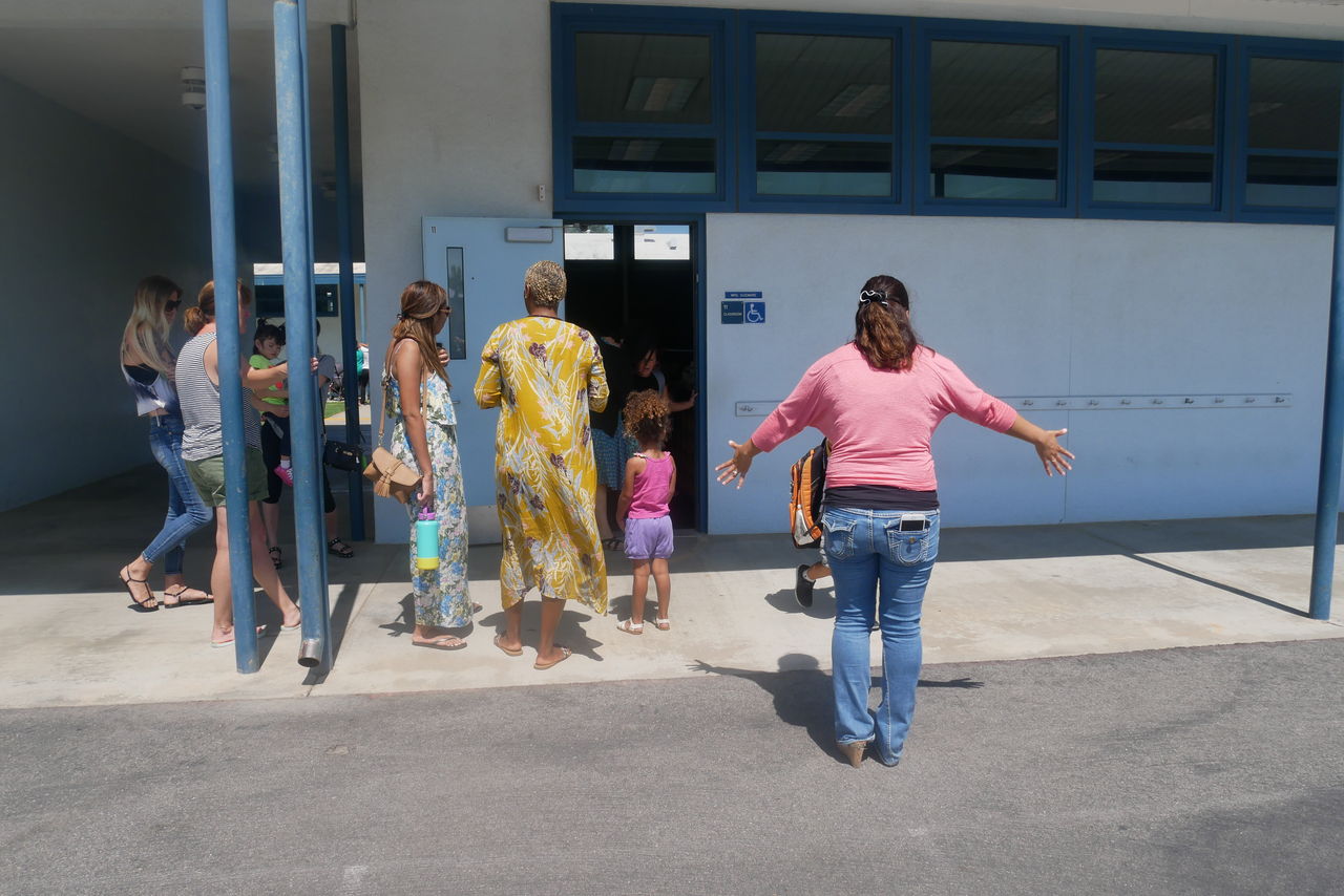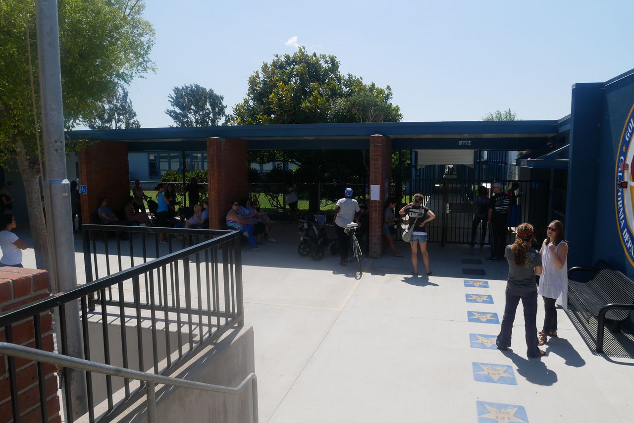 この小学校は親が迎えに行くシステムで、みんな車で迎えに来ています。どこに駐車するかと言うと、路駐です。写真の車は全て迎えに来た親の車です。日本だったら規制されるでしょうね。