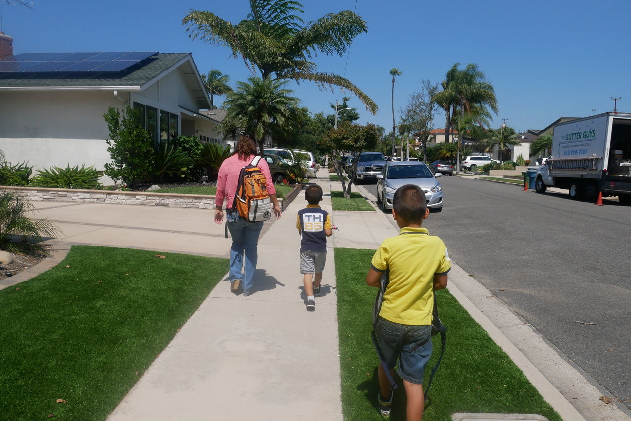 2人の子どもを連れて、マイカーに戻ります。映画のようなシーンですが、日常です。