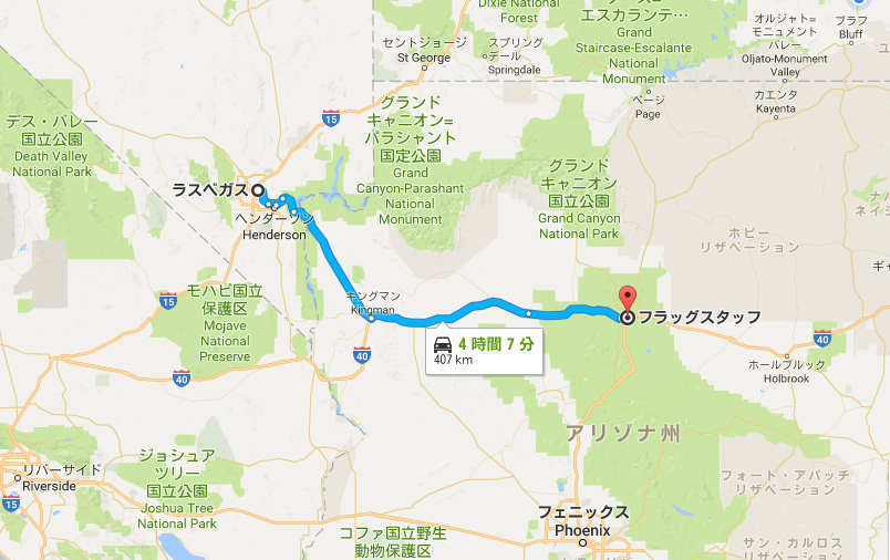 今日はラスベガスからグランドキャニオンの麓の街「フラッグスタッフ」に行きます。411キロの移動です。
