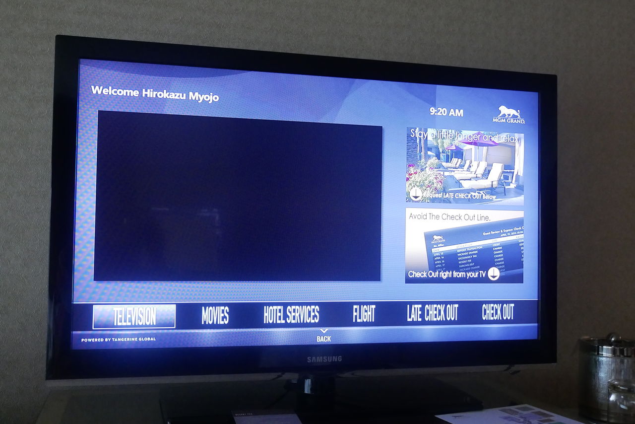 MGMグランドをチェックアウトします。チェックアウトはテレビできました。レイトチェックアウトもテレビからできます。