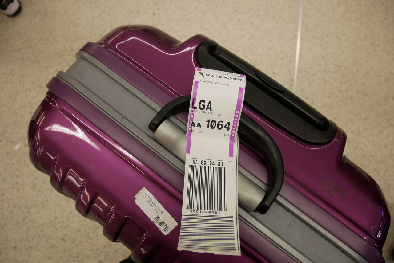 シールを貼って、キャリーバッグを預けます。