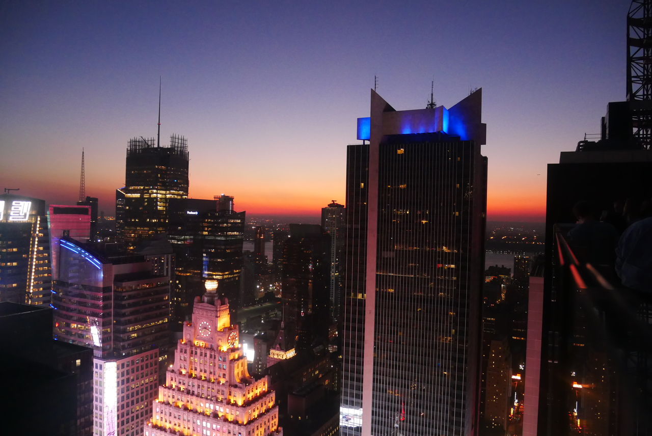 ルーフトップバーから見るマンハッタンの夕日。